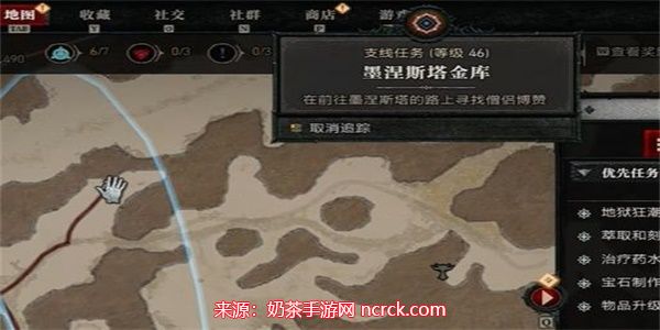 1、首先去传送到任务指定地点,去完成支线任务莫涅斯塔金库。