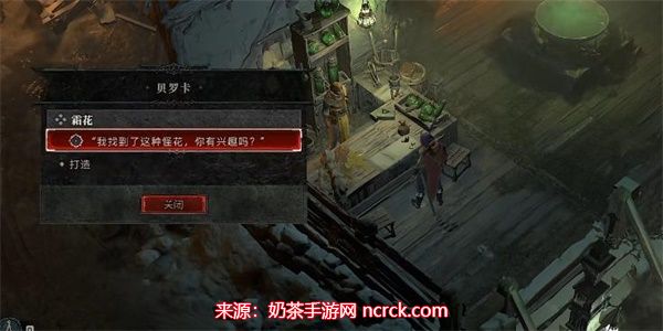 4、接着找到贝罗卡之后,与他进行对话就可以完成支线任务霜花。