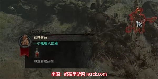 4、任务还未结束,玩家需要继续前行,来到怨灵农场。与苦痛之地类似,这里你还需完成另一场“鲜血仪式”。这次愤怒的狼人将是你的对手。战胜它们后,狼人的血液将成为你的战利品。
