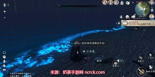1、首先前往东极海(1904,571)的地方在,在这里路过“小贝壳”的旁边就可以进行触发。