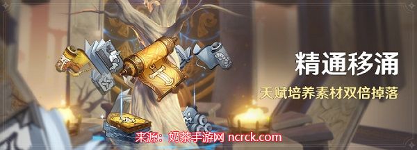 「精通移涌」活动期间,旅行者成功挑战天赋培养素材秘境,领取秘宝奖励时,消耗「原粹树脂」可获得双倍奖励,每天一共可享受3次双倍掉落机会!
