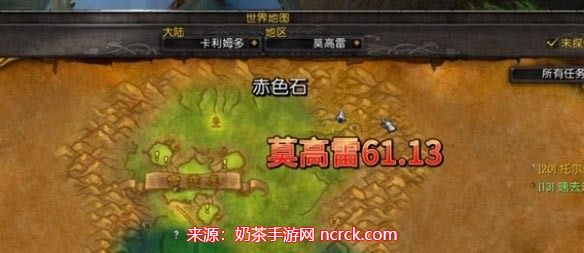 1、我们来到莫高雷的右上坐标61.13接取任务"继续仪式”,然后前往坐标63.16的洞口拾取过往之鼓。