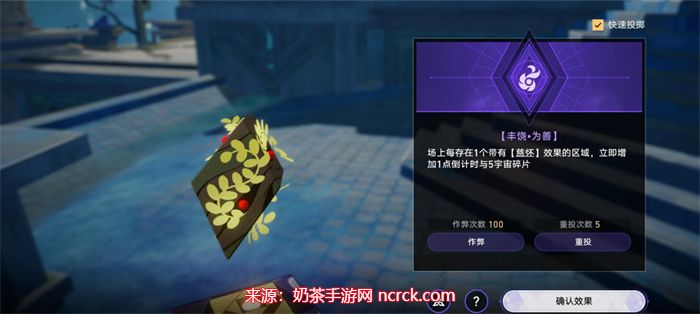 1、选择丰饶命途,第一位面对话结束有概率碰到巡猎的秩序太一的赐福,他会赠送100次作弊次数。