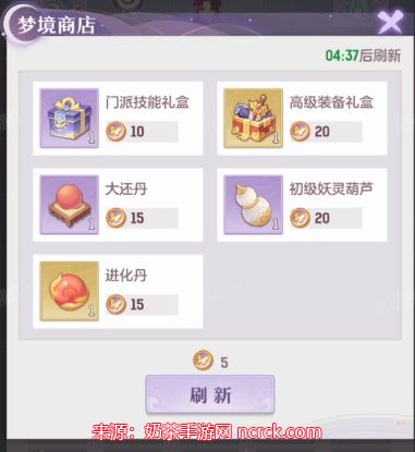 每次捡起道具均会获得一定数量的梦境币,梦境币可在人物界面的商店里购买到该资源刷新阶段下的装备、技能秘籍、妖灵及药品等资源。
