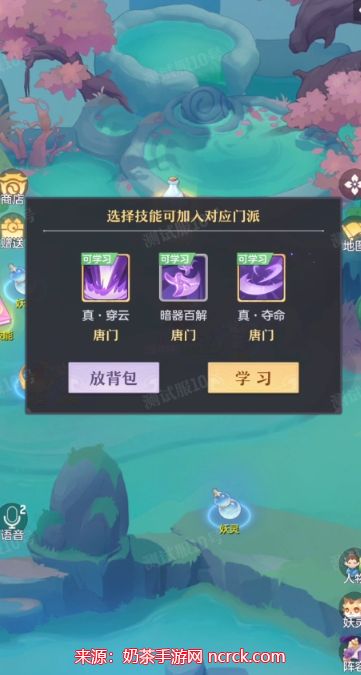 大家在第一次捡起技能秘籍时会有三个门派的技能选择,选择学习该技能的同时会自动成为该门派弟子,甚至连真技能都不会有数量限制,可以说是想学就学,但各位御灵师请注意队友间的沟通,确保阵容搭配是合理的哦!系统也会播报队友的技能学习情况。
